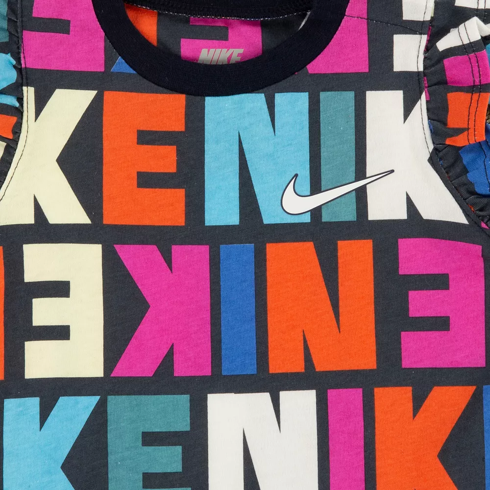She’ll sport a winning look in this baby girl Nike Word Print Romper.