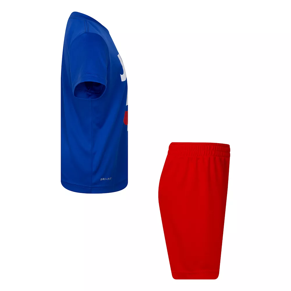 He’ll feel sporty and cool in this boys’ Dri-FIT graphic tee and mesh shorts set from Nike.