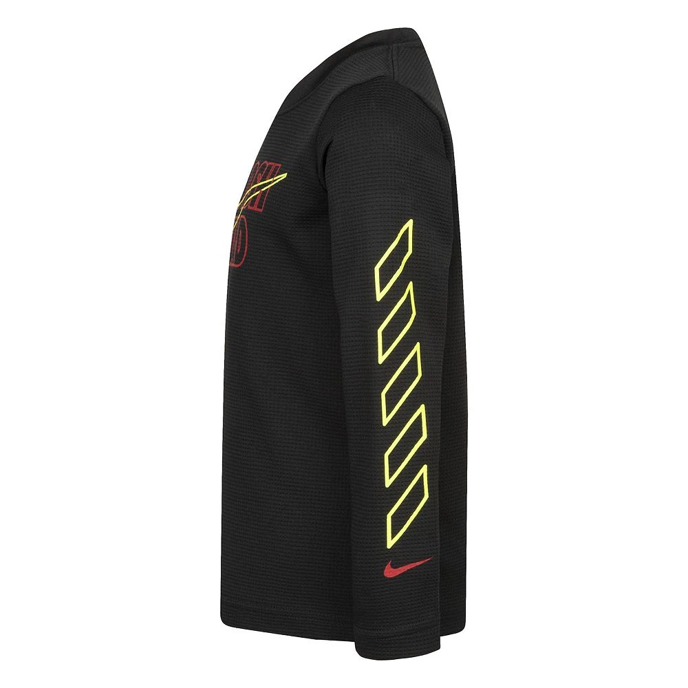 He’ll look cool and feel comfy all day long in this moisture wicking boys’ thermal graphic tee from Nike.