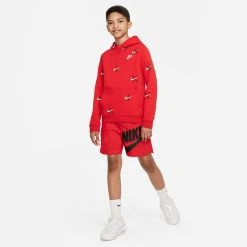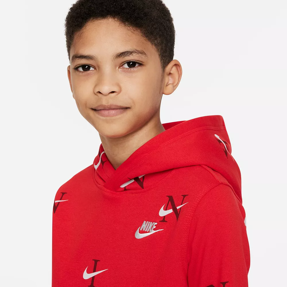 A fleece interior keeps him cozy, while an all-over Nike print lets him showoff his brand love, making this boys’ pullover hoodie a true essential.