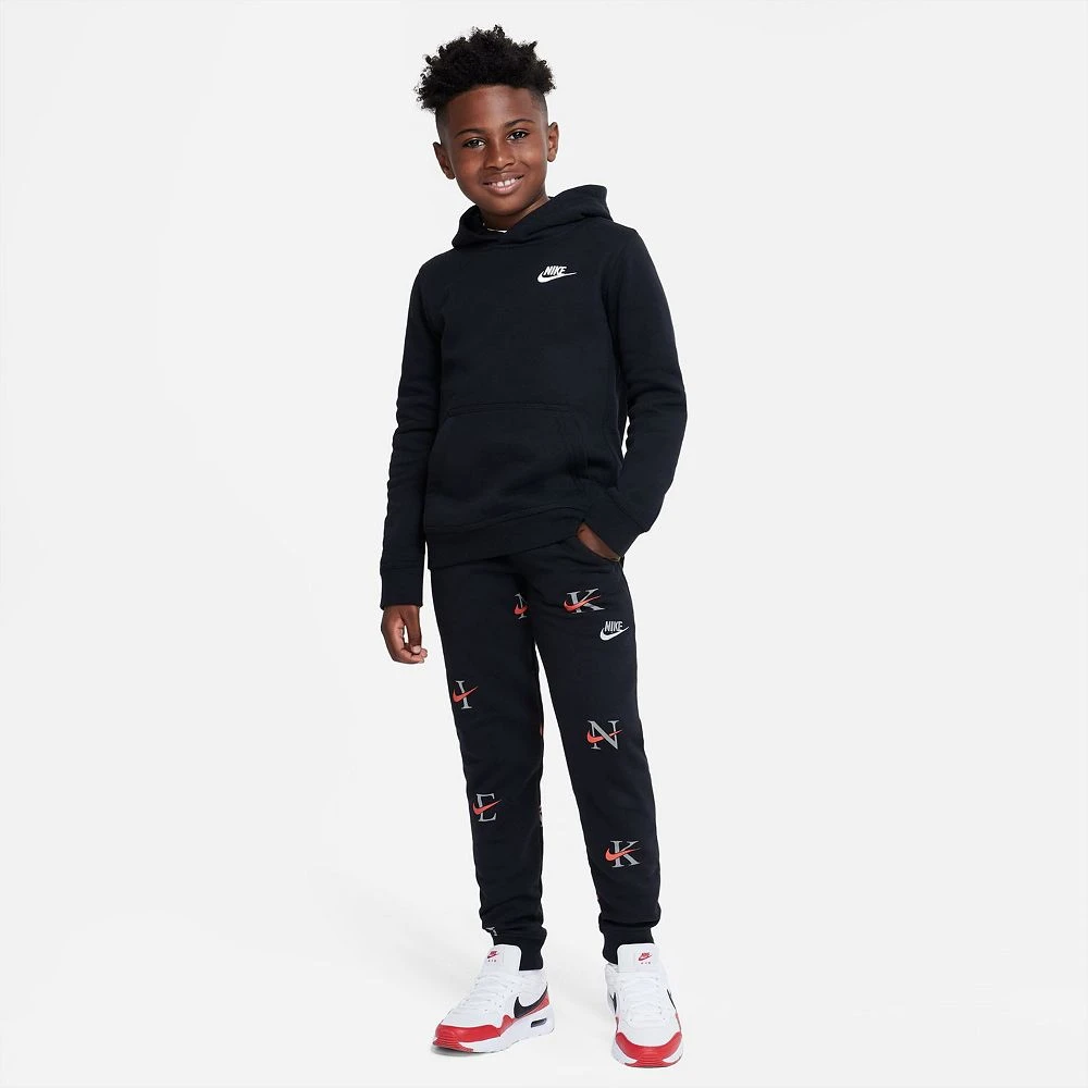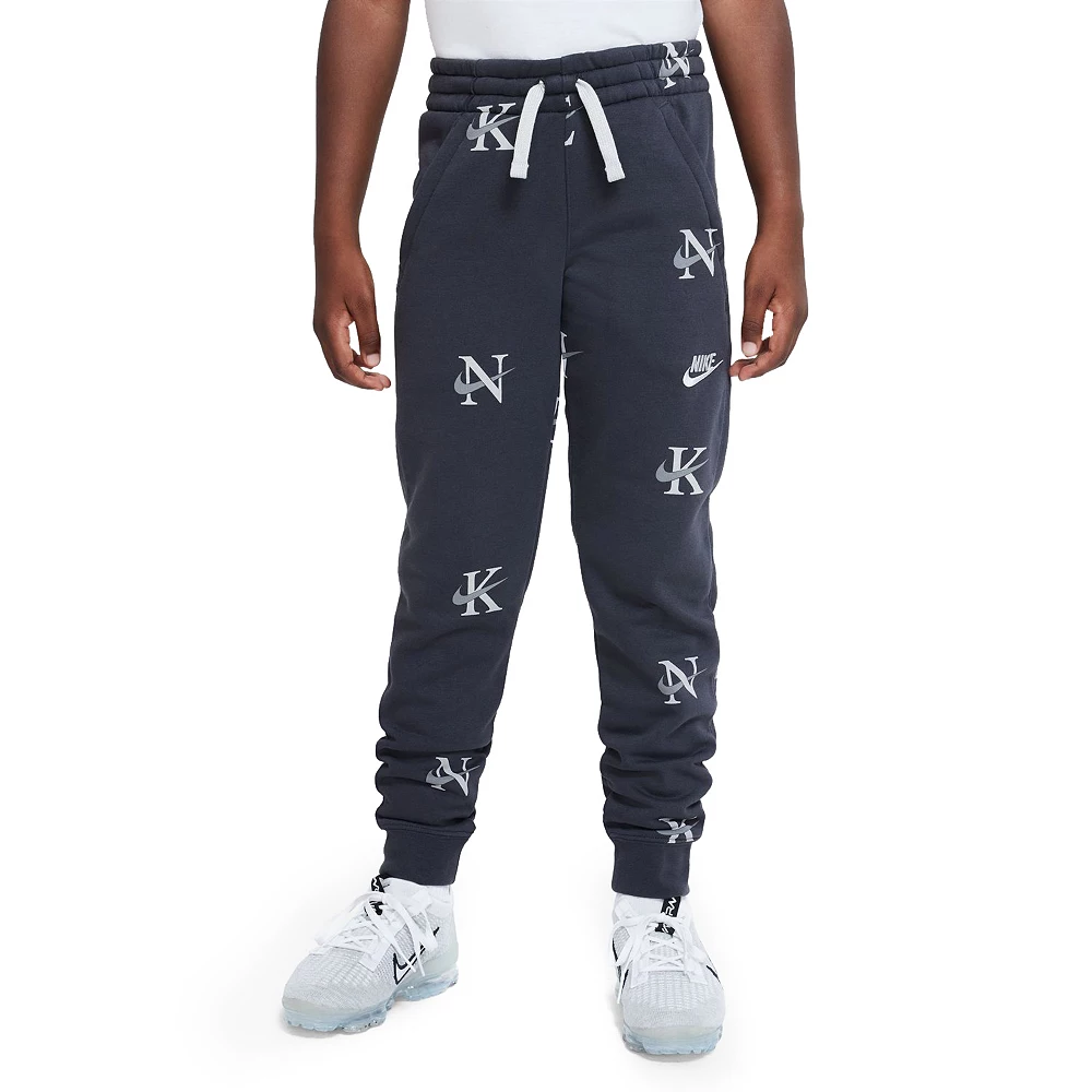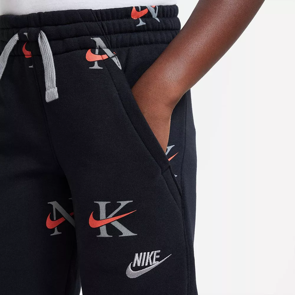 Showoff his brand love in the comfort of these boys’ fleece joggers from Nike. The allover print of these boys’ joggers upgrades his sporty style.