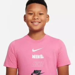 This boys’ classic-fitting Nike tee puts on display all of our logos over the years. Which one is your fave?