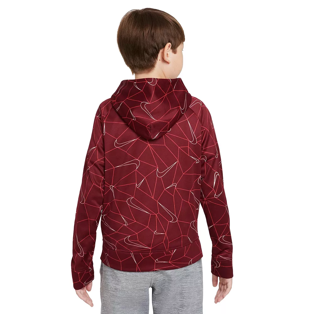 This Nike Therma-FIT boys’ hoodie is made with comfortable fabric that’s smooth on the front and fuzzed on the back for extra warmth and softness.