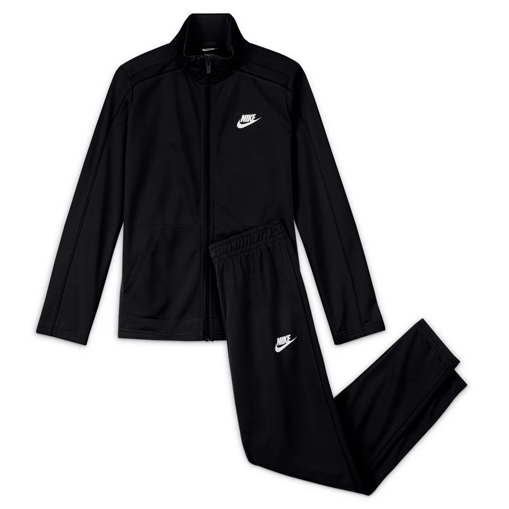 This Nike boys’ tracksuit mashes old-school track style with an all-in-one outfit. This classic combo has a full-zip jacket and pants that feel soft and comfy for the playground or just hanging out.