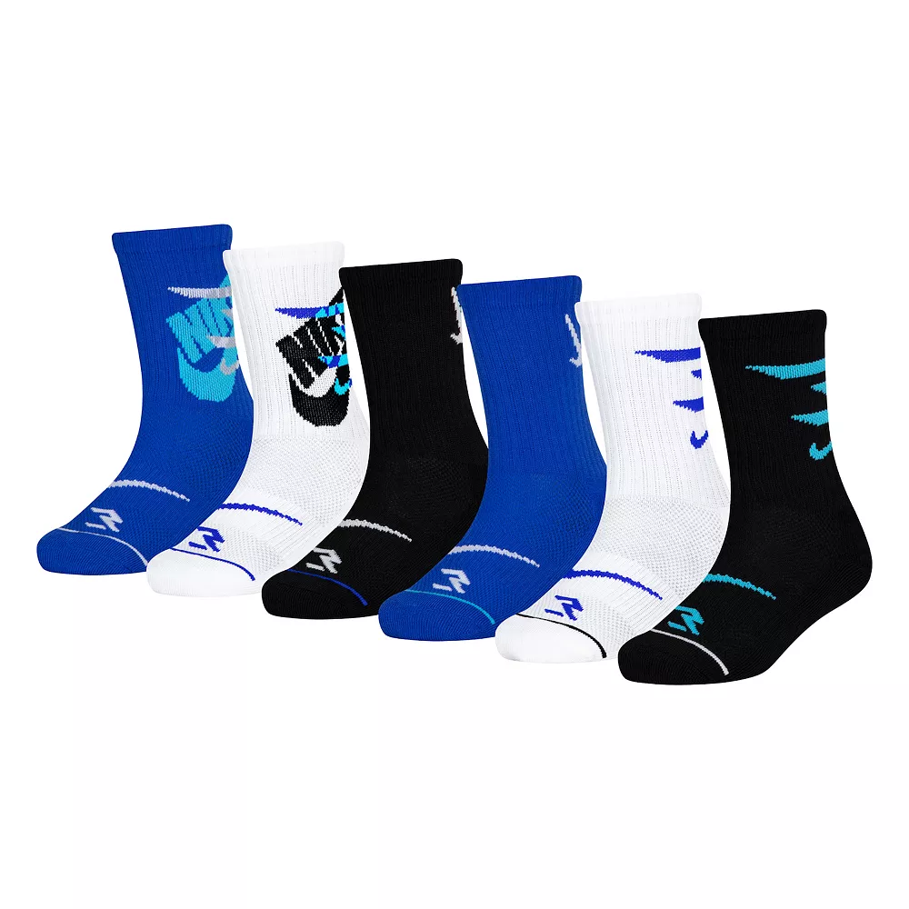 Upgrade his basics wardrobe with the functionality, comfort and style of these boys’ Nike 3BRAND by Russell Wilson crew socks.