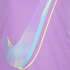 - Tee: moisture-wicking, Dri-FIT interlock knit fabric, crewneck, short sleeves, graphic Swoosh on front.