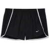 - Shorts: woven microfiber fabric with moisture-wicking Dri-FIT technology, allover graphic print, elasticized waistband, solid binding trim at sides and hem, and built-in liner for full coverage.