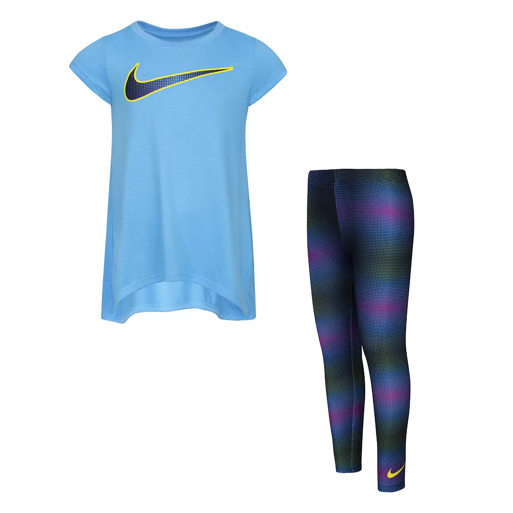 She’ll sport a winning look in this Girl 4-6x Nike Tunic and Printed Leggings Set.