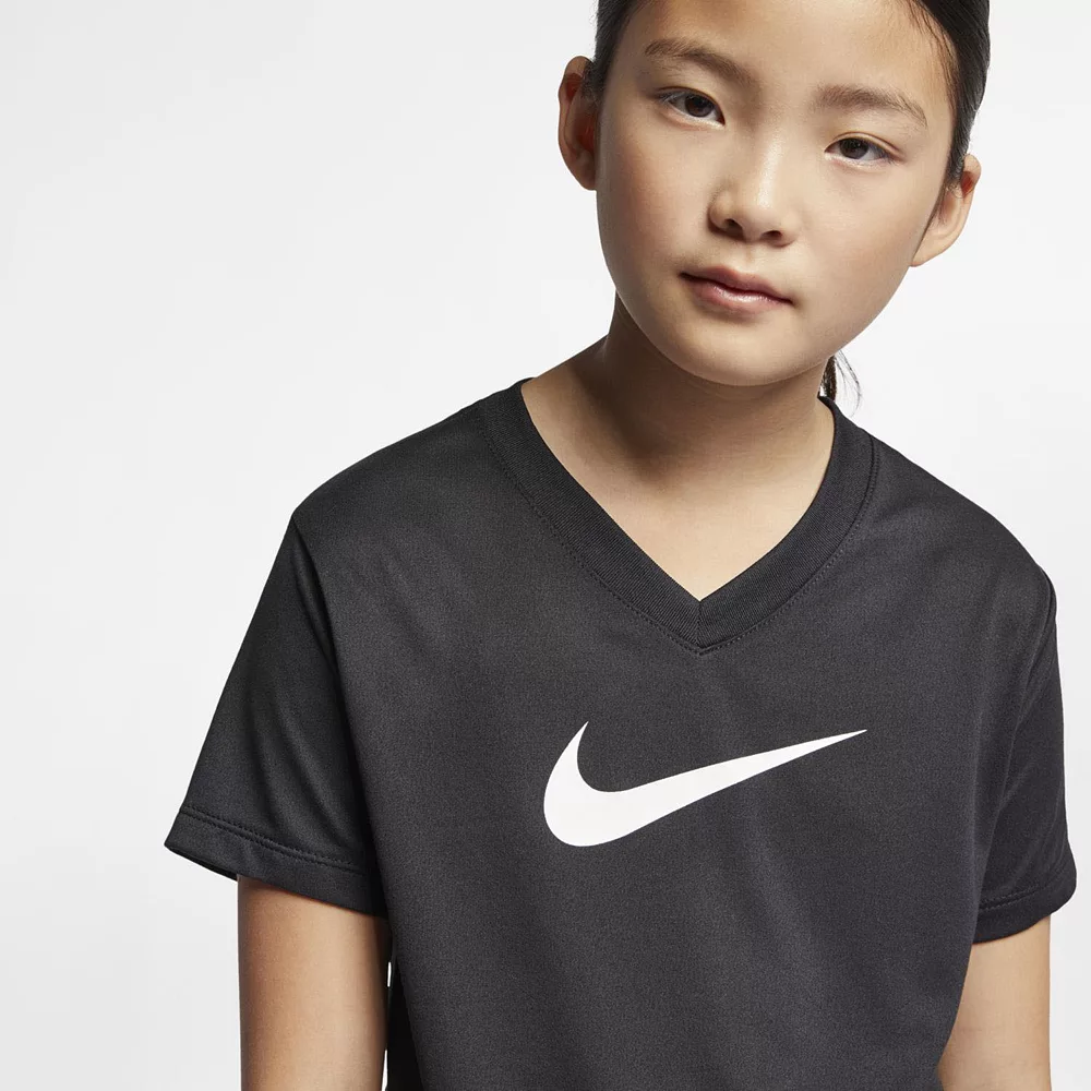 She’ll feel and stay comfortable all-day long in this performance girl’s tee from Nike.