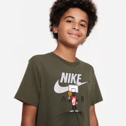 Hoopers unite! This loose-fitting kids’ Nike T-shirt shows our favorite shoebox, Boxy, getting warmed up on the courts and ready for a pickup game of 1-on-1.