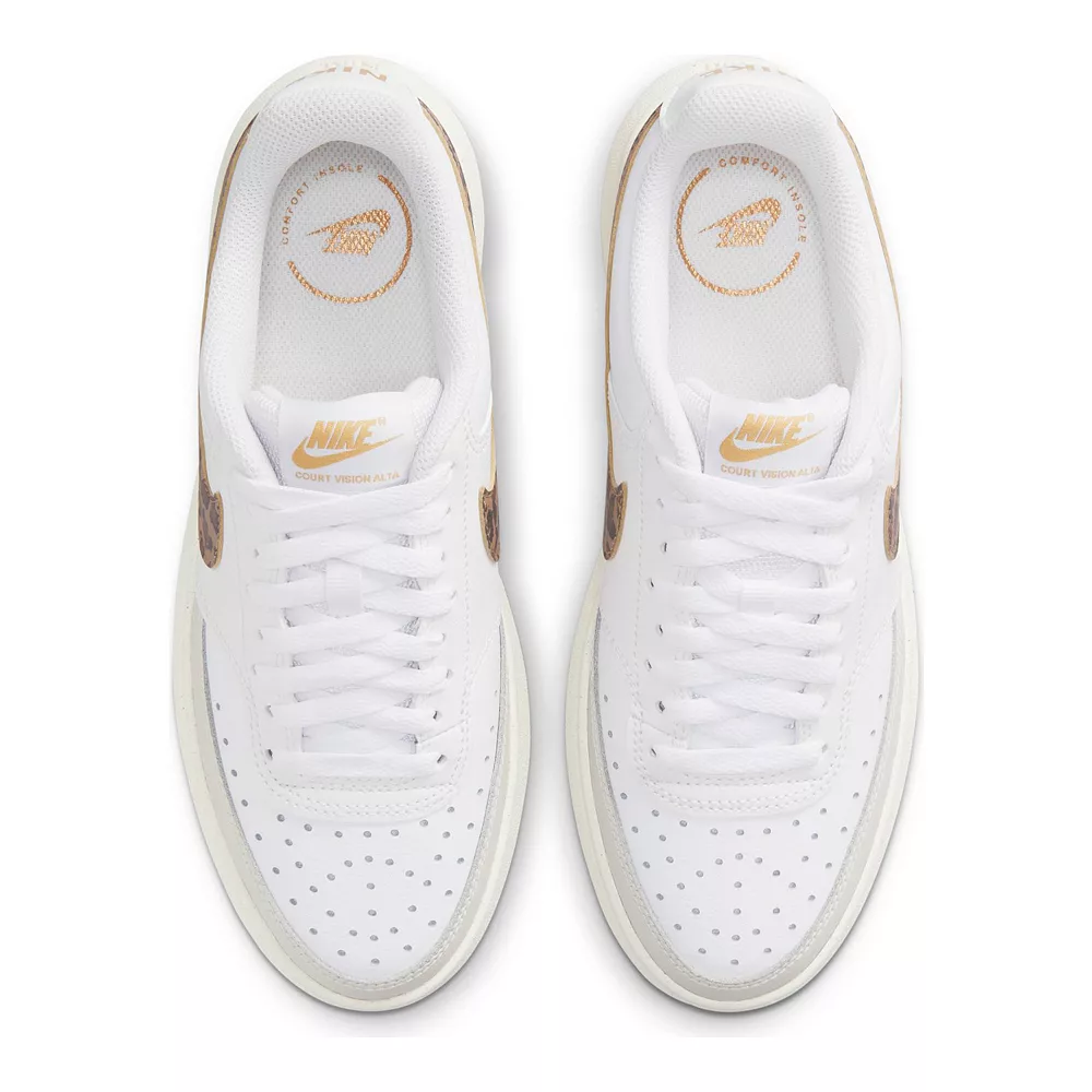 Street fashion meets b-ball authenticity in the distinctly modern Nike Court Vision Alta women’s shoes. The detailed upper features angled heel, crisp synthetic leather and a bold leopard-spotted Swoosh to help you live out loud.