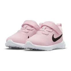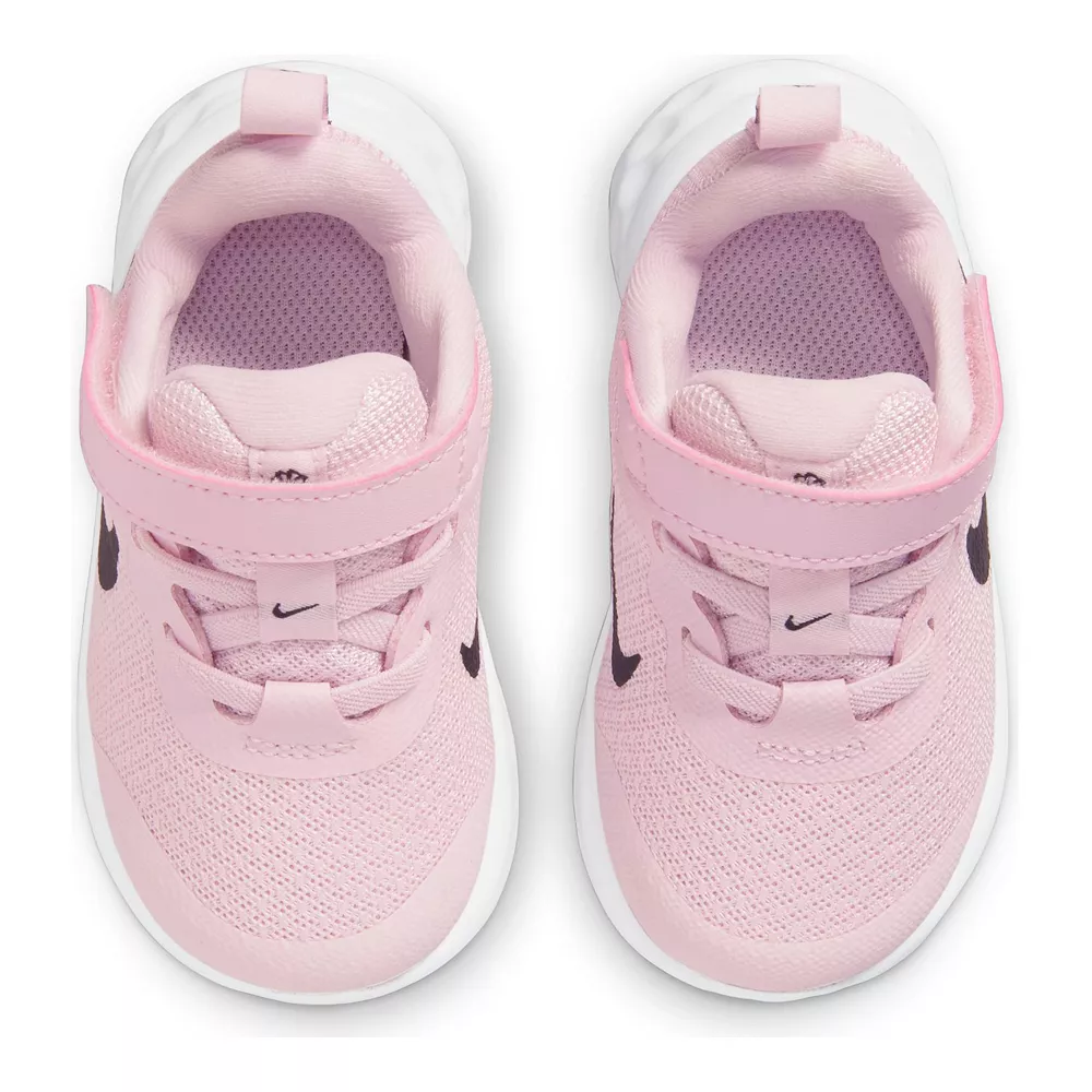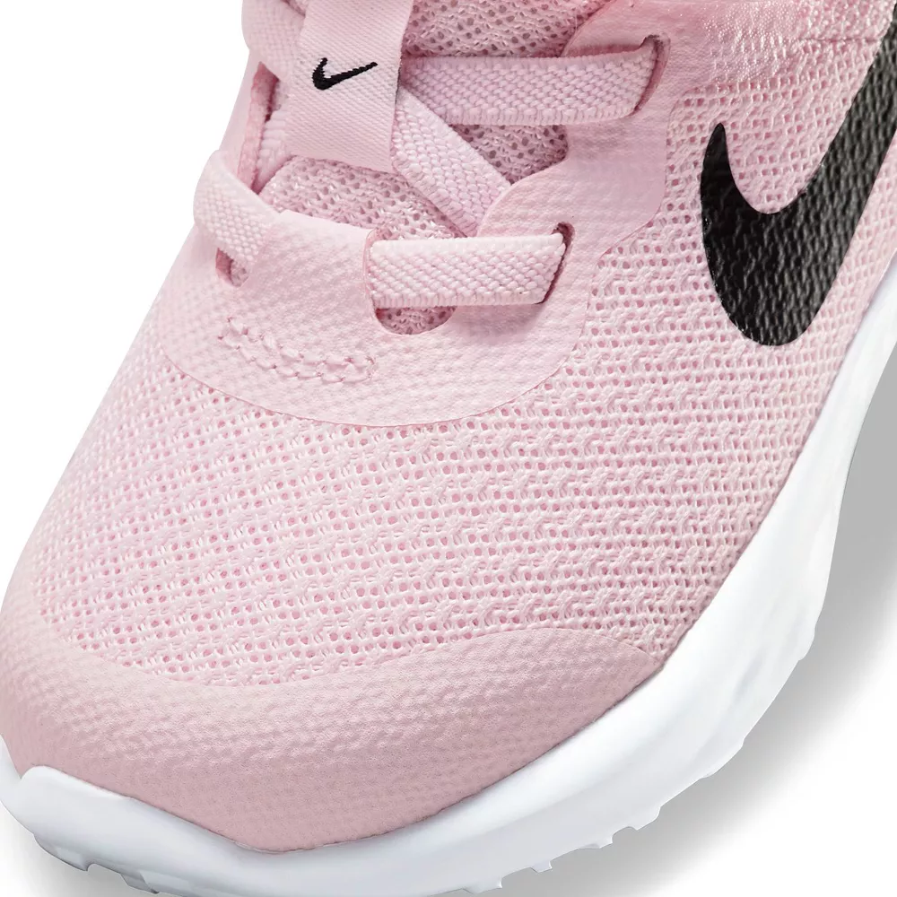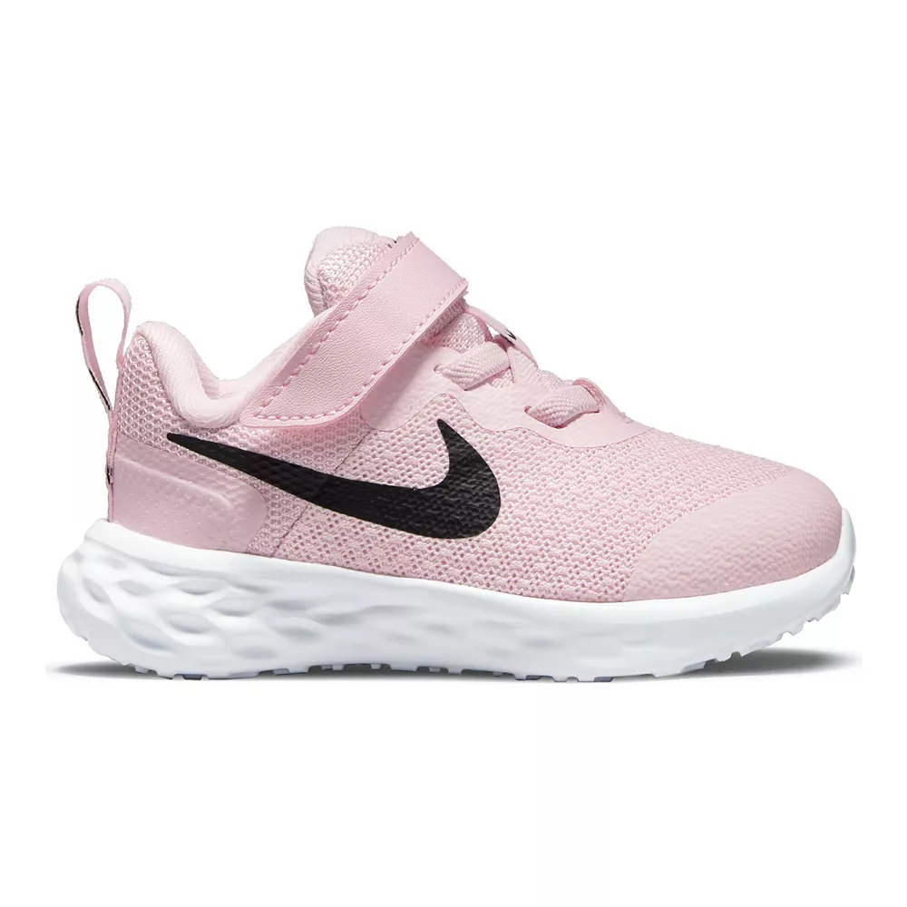These Nike Revolution 6 shoes are all about versatility for our littlest athletes. From all-day play to anytime wear with any outfit, kiddos can feel comfy and secure after slipping these on. Lightweight textile provides breathability so little feet can stay cool A hook-and-loop strap and elastic laces make these kicks easy to take on and off Soft foam underfoot creates plush cushioning with every step Heel overlay offers support and stability for multi-directional moves Extra skin layer across the toes provides reinforcement against toe draggers