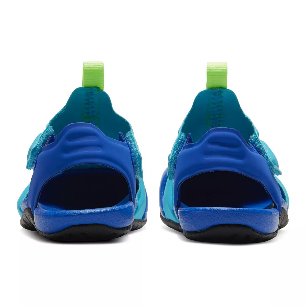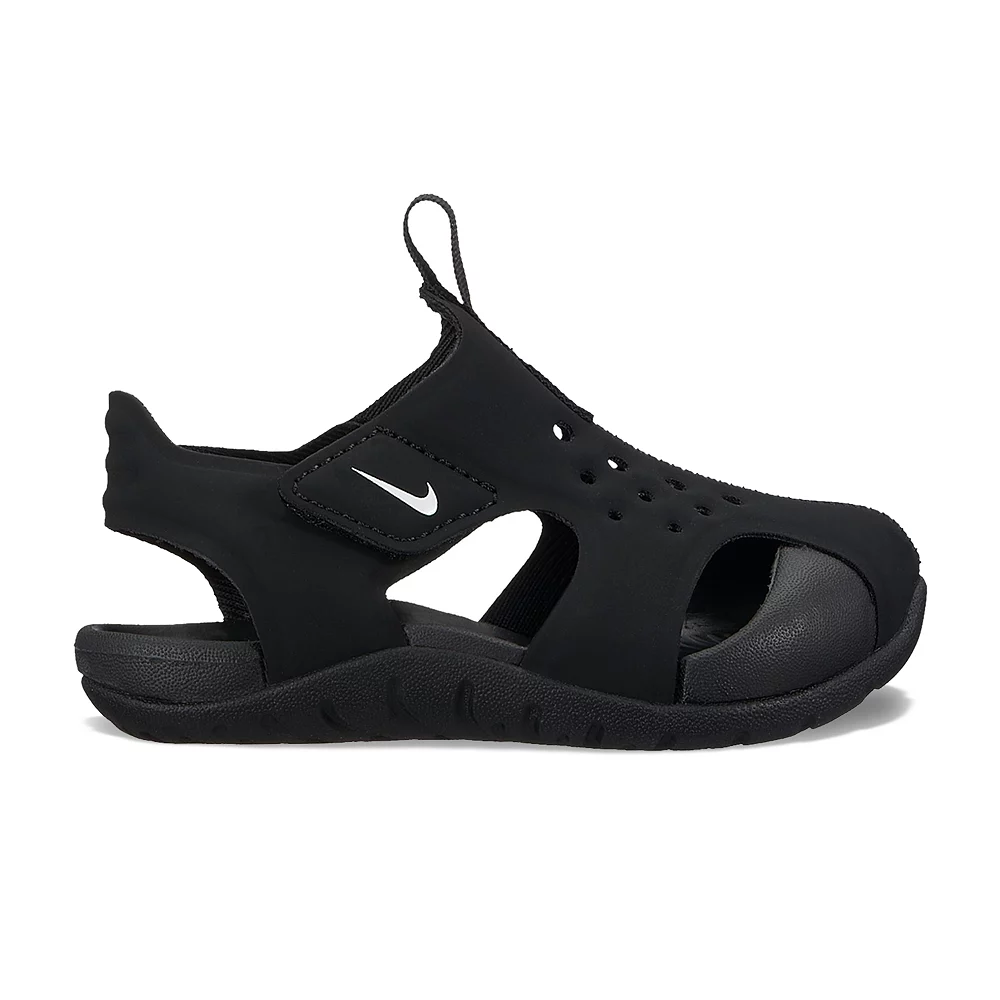 These Nike Sunray Protect 2 sandals feature total toe coverage and outsole traction perfect for outdoor play. Hook-and-loop straps help make on and off easy, while openings in the upper promote airflow when little feet get hot.