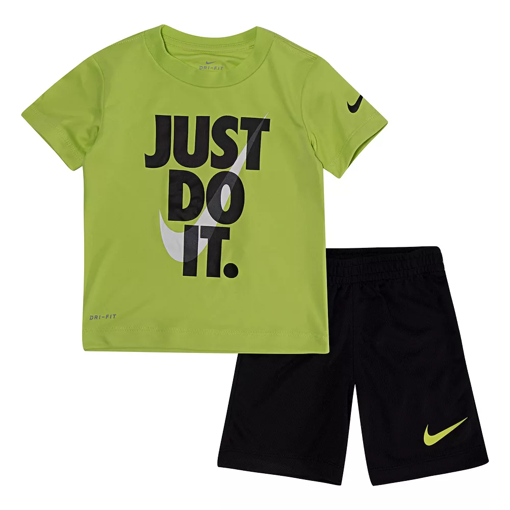 Keep him sporty in this boys’ Nike coordinated tee and shorts set.