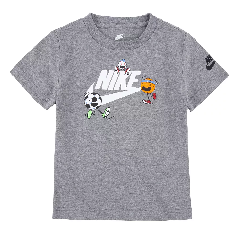 Nike brings the fun style with this boys’ sporty Nikemoji graphic tee.
