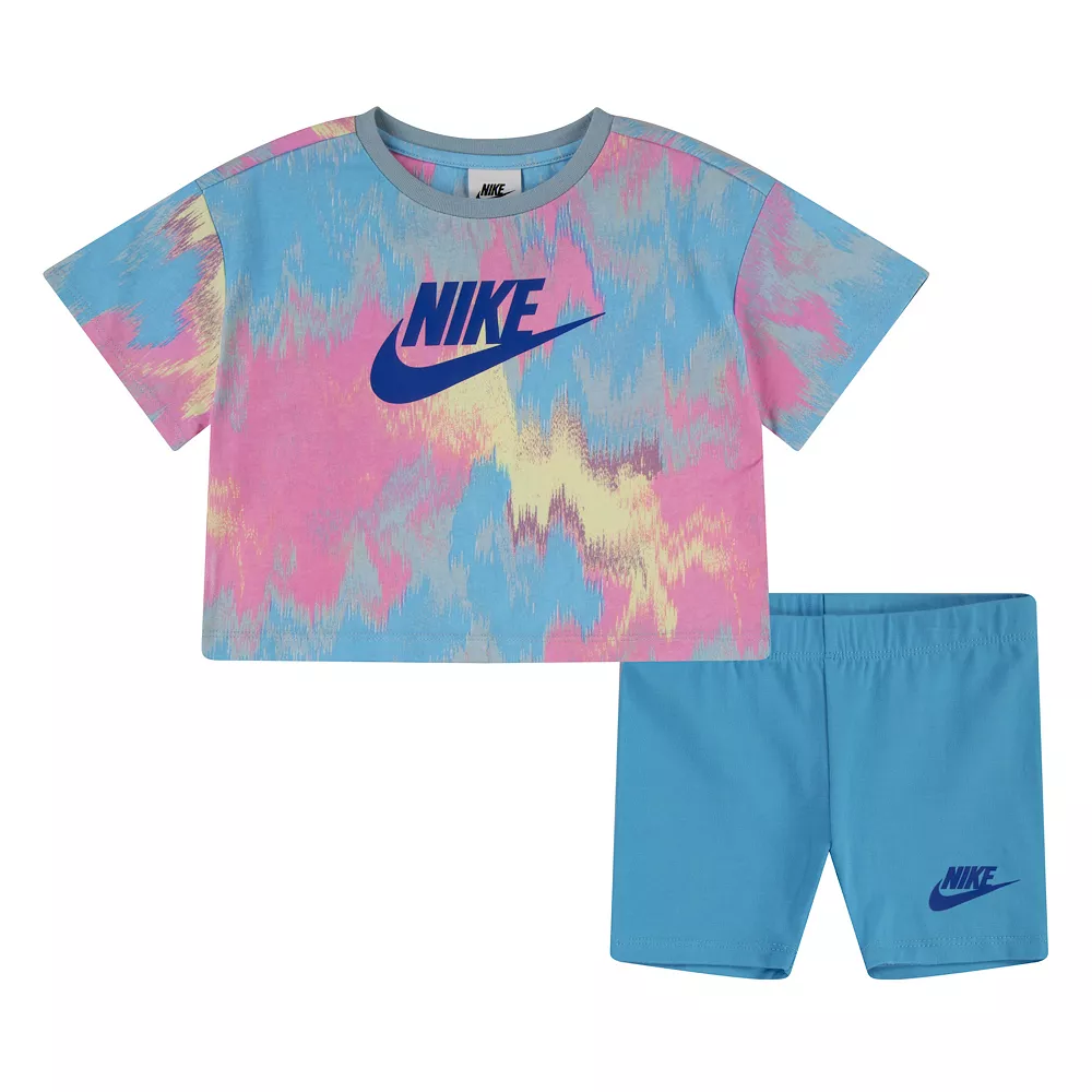 She’ll sport a winning look in this Toddler Girl Nike Boxy Tee & Bike Shorts Set.
