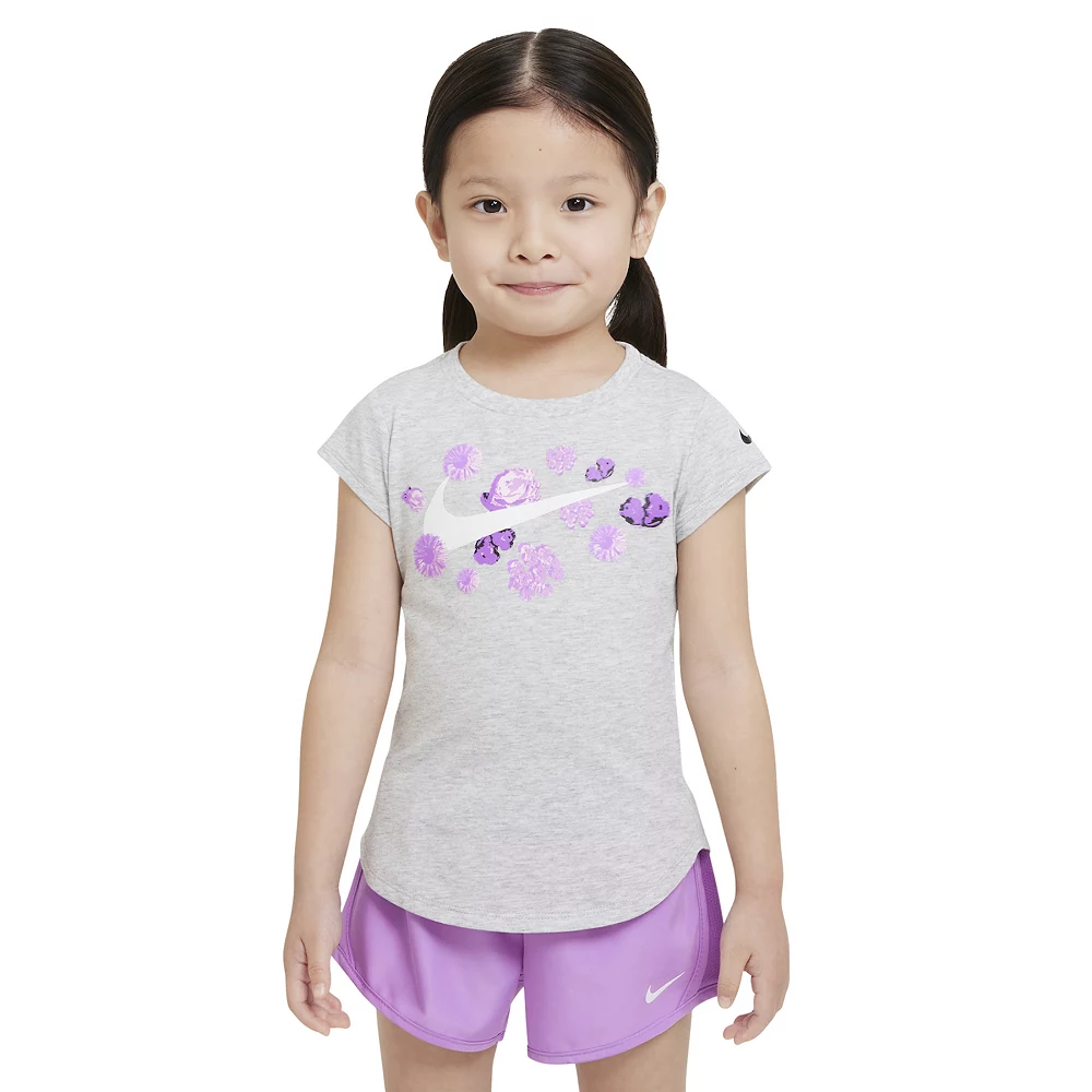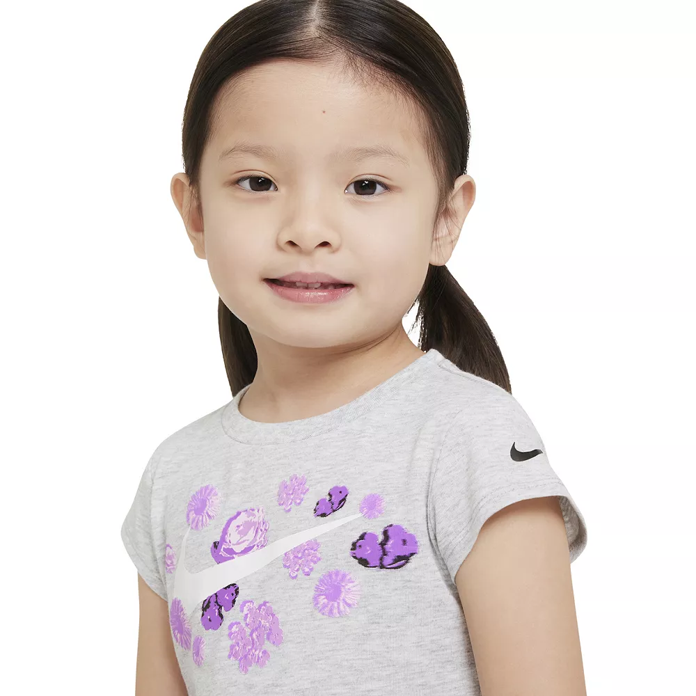 She’ll sport a winning look in this Toddler Girl Nike Floral Logo Tee.