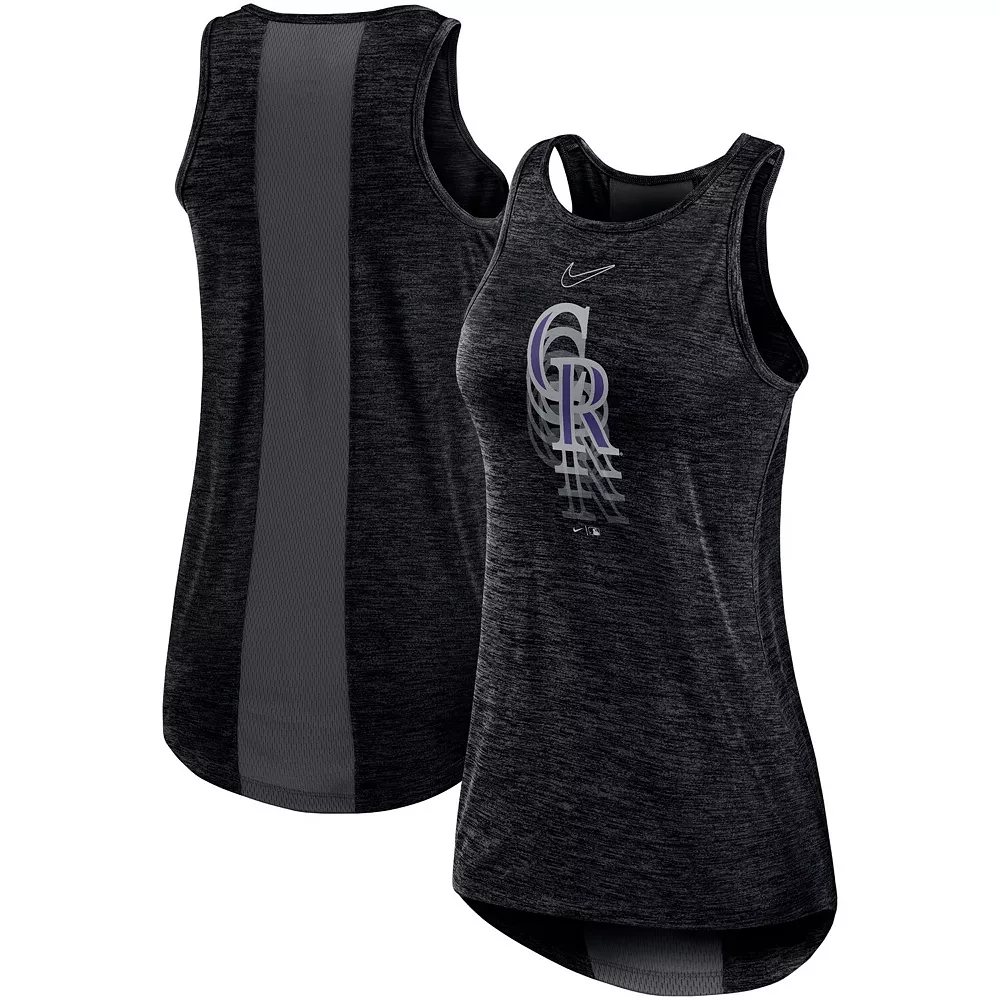 Show off your Colorado Rockies spirit in style with this Logo Fade tank top from Nike. Designed with moisture-wicking Dri-FIT technology, this shirt is great for active days. The stylish high neck and Colorado Rockies details make it a perfect pick for spirited game days all season long.