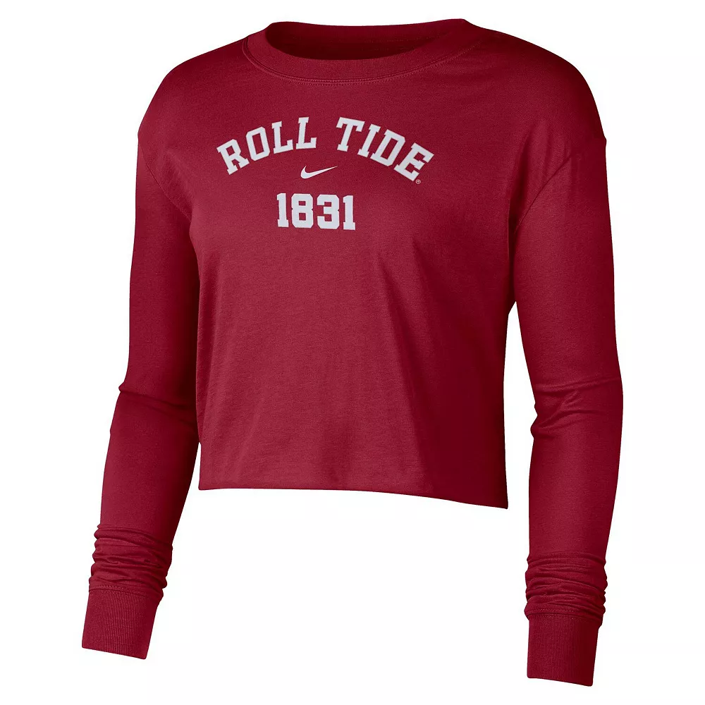 Grab a tee that makes you feel as good as watching your Alabama Crimson Tide with this Nike Est. cropped T-shirt. Soft cotton fabric and an oversized fit allow for easy movements and comfort. Bold Alabama Crimson Tide graphics complete this top for a trendy piece of fan gear.