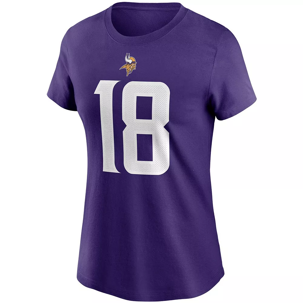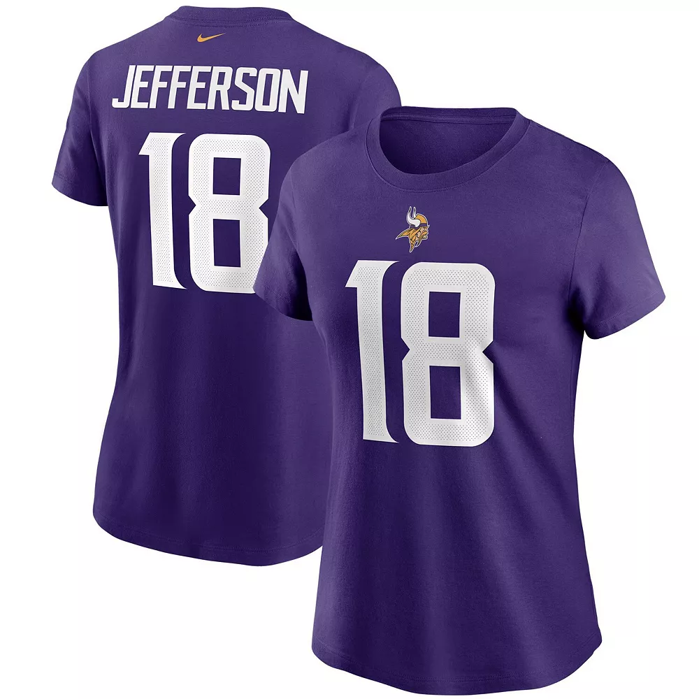 Since Justin Jefferson is your favorite player, and for good reason, show him your support by grabbing this Minnesota Vikings Name and Number T-shirt from Nike. It features the Minnesota Vikings logo on the front and Justin Jefferson graphics printed on the back. No one will be able to question where your loyalty lies on game day when you wear this jersey-inspired tee.
