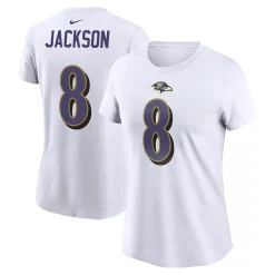 Show off your dedication to the Baltimore Ravens by sporting this Lamar Jackson Player Name and Number T-shirt from Nike. The team graphic on the front and your favorite player’s name and number on the back help you showcase that, not only are you a die-hard fan, but you also can’t wait to watch Lamar Jackson make some highlight-reel plays.