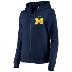Stay perfectly warm and comfortable in this Michigan Wolverines Varsity Fleece hoodie from Nike. Its full-zip design lets you control how much heat you need throughout the day, while slip pockets keep items within easy reach. Plus, printed Michigan Wolverines graphics ensure everybody knows which college team you support.