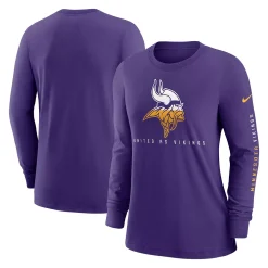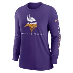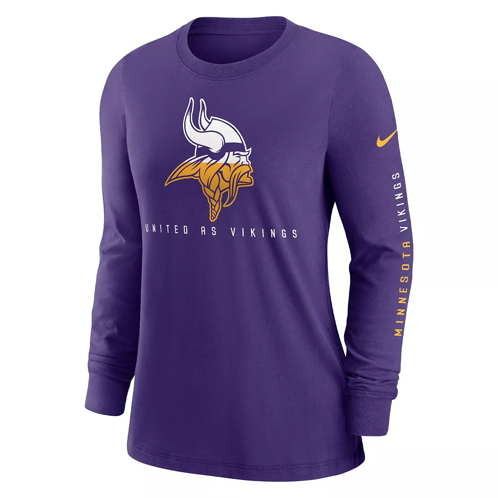 Stave off cooler temperatures with a spirited display of your Minnesota Vikings pride in this Prime Split T-shirt from Nike. It features striking Minnesota Vikings graphics on the chest and sleeve that leave no doubt you stand united with your fellow supporters. Plus, cozy long sleeves and a classic design make it a perfect pair with other team-inspired, layering options.