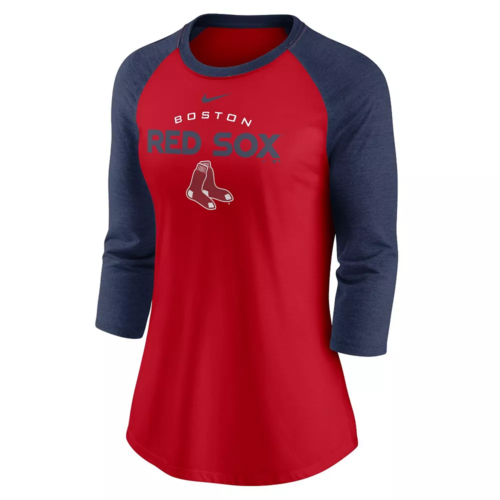 Let your fandom shine this season in true Boston Red Sox style with this Modern Baseball Arch T-Shirt from Nike. Along with roomy raglan sleeves for optimal arm movement, this tee offers a droptail hem for extra coverage. Best of all, the vibrant colorway and spirited Boston Red Sox graphics on the chest let you show off your devotion to the squad.