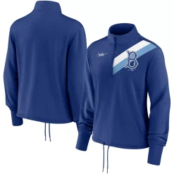Sport this Nike Cooperstown Collection Rewind half-zip pullover each time you reminisce about the Brooklyn Dodgers. It features an authentic design with the mock neck for extra coverage, fleece lining for warmth and unique adjustable waistband. Plus, the bold stripe across the chest accentuates the classic Brooklyn Dodgers graphics for a standout game day layer that’s sure to draw the eye.