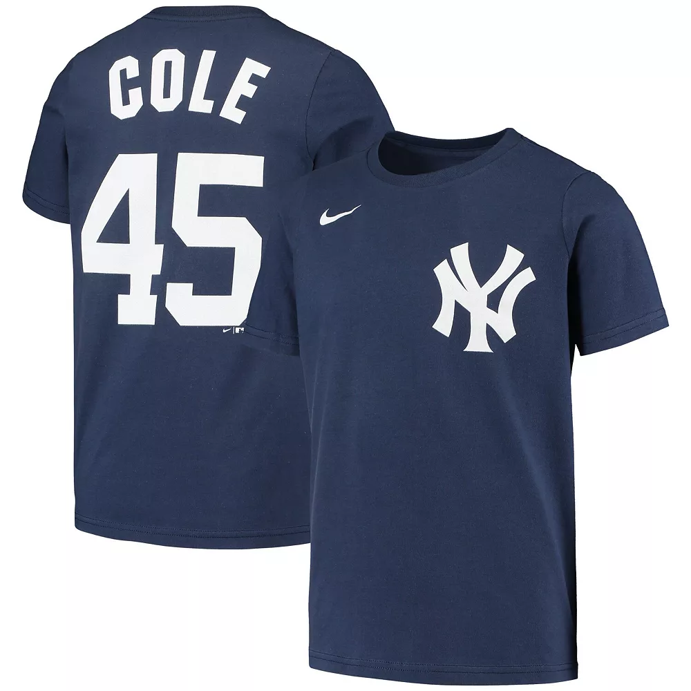 Your youngster is looking for an awesome tee to wear whenever they go to the ballpark. You can help them do just that by getting this Gerrit Cole New York Yankees Player Name and Number T-shirt from Nike. With stunning New York Yankees and Gerrit Cole graphics on the front and back, your kiddo will be able to showcase their fierce devotion to the team.
