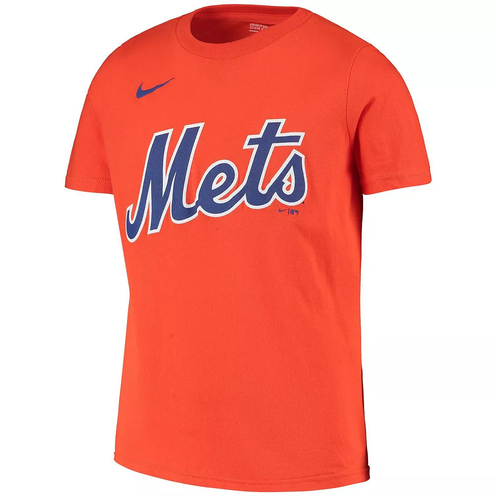 Your youngster is looking for an awesome tee to wear whenever they go to the ballpark. You can help them do just that by getting this Pete Alonso New York Mets Player Name and Number T-shirt from Nike. With stunning New York Mets and Pete Alonso graphics on the front and back, your kiddo will be able to showcase their fierce devotion to the team.