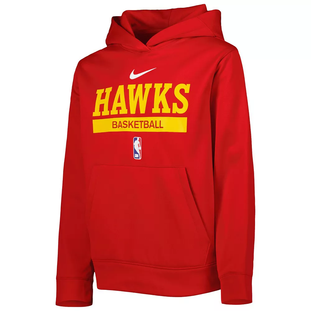 Let your young Atlanta Hawks supporter show their true colors and stave off lower temperatures with this Spotlight Practice hoodie from Nike. It features bold Atlanta Hawks graphics printed across the chest and a classic front pouch pocket that makes keeping their favorite game day accessories on-hand simple. Plus, the integrated Dri-FIT fabric technology helps them keep comfortable when it’s time to layer up.