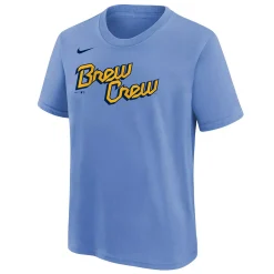 Youth Nike Christian Yelich Powder Blue Milwaukee Brewers 2022 City Connect Name & Number T-Shirt
